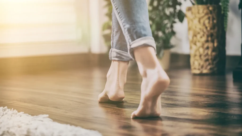 Barefoot Walking: Walking without shoes or wearing footwear lacking support can exacerbate symptoms by placing extra strain on the plantar fascia.
